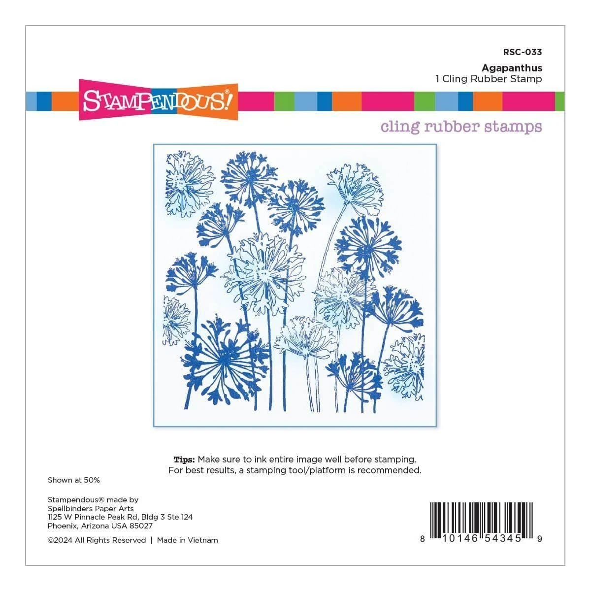 Stampendous Agapanthus Cling Rubber Stamp Set is a field of rounded clusters of tubular flowers that create a magical look! The blooms are stamped in silhouette and in-line designs to allow the option of filling with color. Designer’s Tips: Make sure to ink the entire image well before stamping. For best results, a stamping tool/platform is recommended.