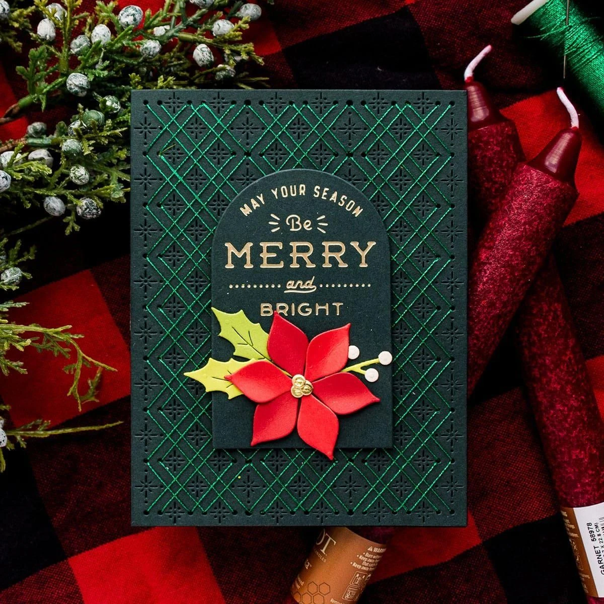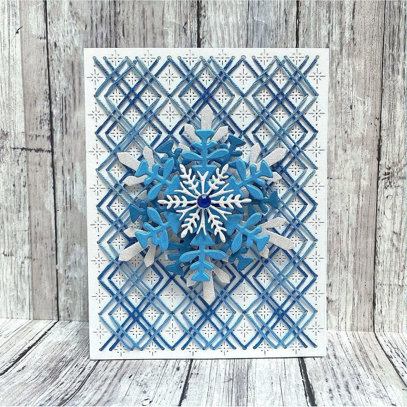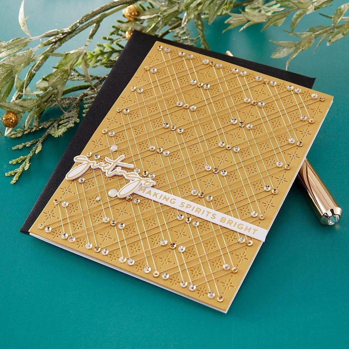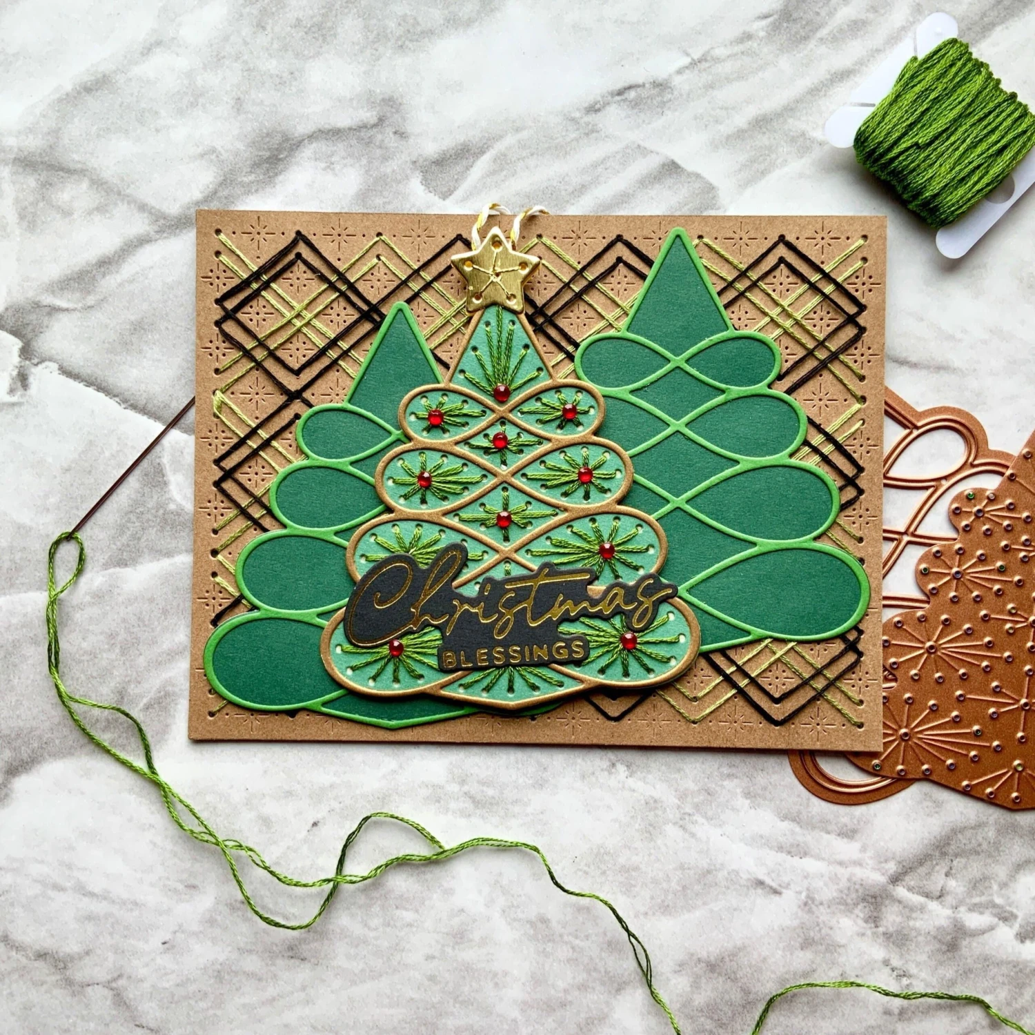 Stitched Starry Argyle Etched Dies are from the Stitched for Christmas Collection by Spellbinders. This thin metal cutting die covers a standard A2 (4.25 x 5.5 inch) size card front. When cut, it creates a wonderful argyle design with stars in between the threads when stitched. Truly a magical backdrop! Designer’s Tip: Using two strands of a six strand DMC Floss or DMC Diamant Metallic Thread and a Size 22 Tapestry Needle (sold separately) are recommended.