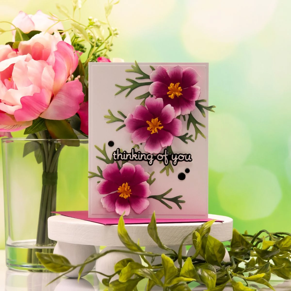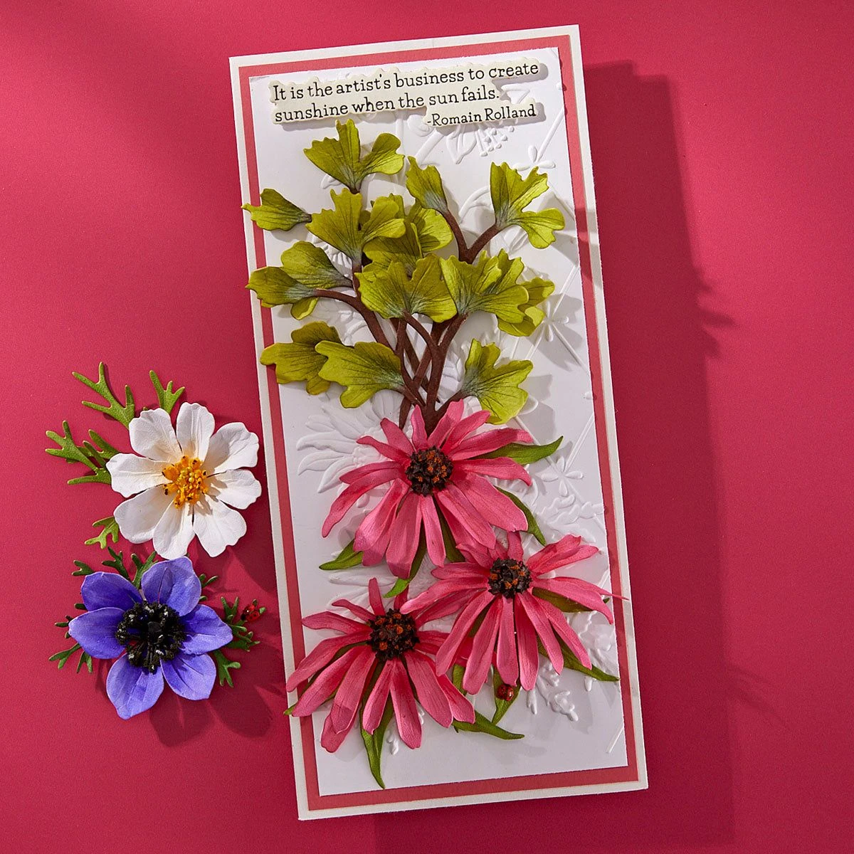 Summer Solstice Garden Die Bundle includes all the florals in this collection. They are S2-440 Anemone, S4-1434 Petunia and Hummingbird, S4-1435 Begonia and Ladybugs, S4-1436 Cosmos, and S4-1437 Echinacea (Coneflower). Perfect for your garden-loving paper crafter!