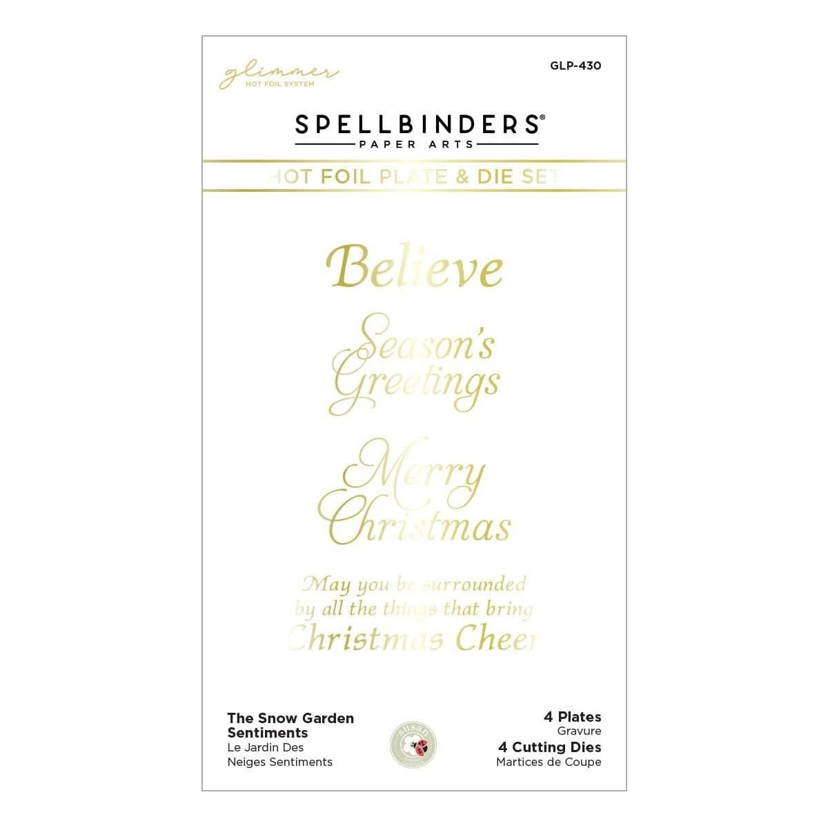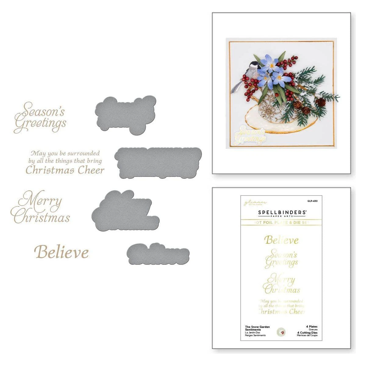 The Snow Garden Sentiments Hot Foil Plate & Die Set is from the Snow Garden Collection by Susan Tierney-Cockburn and includes four hot foil plates and four dies. These sweet sentiments include four heartfelt messages that are the perfect finishing touch on all of your holiday projects. These messages are ideal as both a feature point on a card front, or as a message tucked inside your card. Includes “Season’s Greetings,” “May you be surrounded by all the things that bring Christmas Cheer,” “Merry Christmas,” and “Believe.”