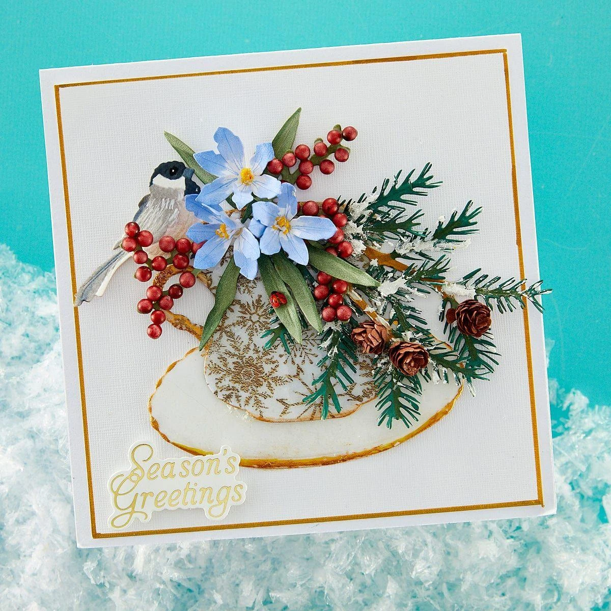 The Snow Garden Collection by Susan Tierney-Cockburn is a fresh offering of winter florals and greenery that are perfect for adorning projects of all kinds this holiday season. Add festive cheer to all your paper crafting projects with these beautiful dimensional blooms, pinecones, and foliage.