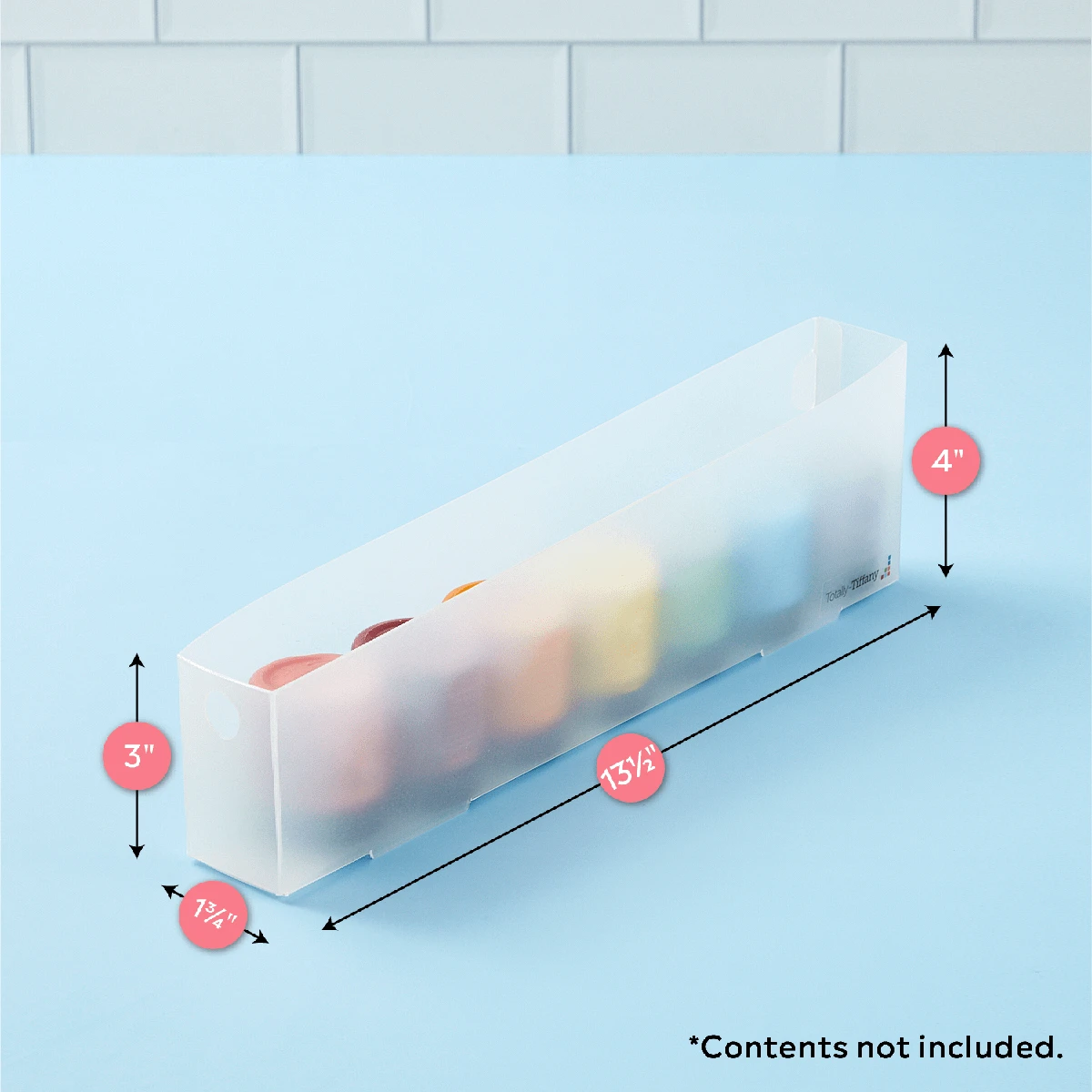 Featuring three trays per pack, each tray measures 1.75 inches in width, 13.5 inches in depth, and 4 inches in height. These trays are specifically designed to accommodate items such as 2 oz glitter containers, craft paints, and wide washi tape. It also works great for small spritz/spray bottles, long thin scraps, and even a few of your favorite long thin tools.