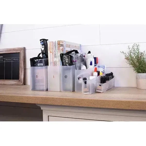 Fed up with the hassle of reaching for items at the back of cupboards, risking spills and disarray? The Slide, Stash & Store system provides the solution. Organize your bottles, jars, pots, spools, stamps, paper pads, and Buddy Bags in the lightweight trays. Slide them out to quickly locate what you need—visible, fast, and easy.