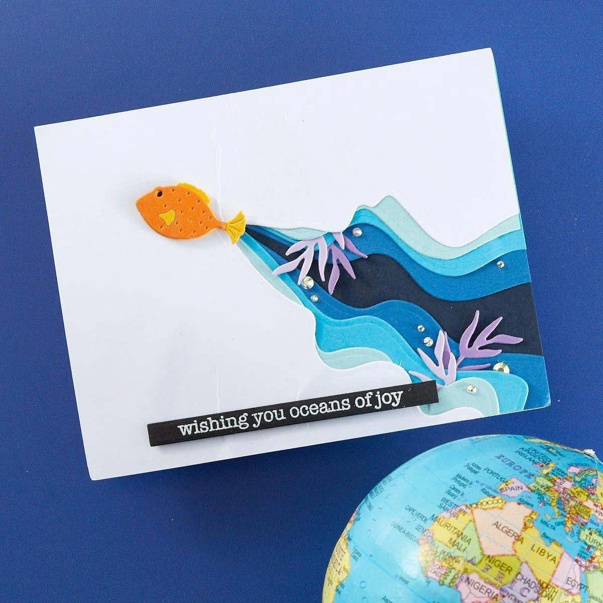 Typewriter Adventure Sentiments Clear Stamp Set is part of the Tunnel Scapes Collection by Vicky Papaioannou. The 27 sentiments impress a lowercase typewriter font that goes well with this collection. It includes hello sunshine, you’re fantastic, colorful wishes, adventure awaits, happiness blooms and more. They are designed to work with an acrylic block and made in the USA. This unique offering creates many tunnel sceneries from the ocean to the sky, and everything in between. Vicky Papioannou made the Tunnel Scapes Collection to mix and match sets to achieve this with a coordinating stamp set to tie it all together. What beautiful passageway will you create?