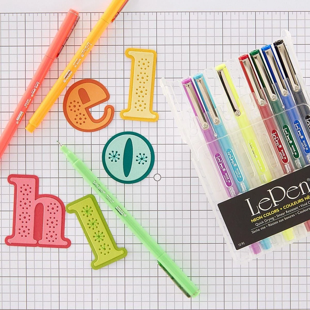 Le Pen Neon 10 Piece Set includes smooth micro-fine plastic point pens for precision in crafting, journaling, card making, scrapbooking, and many other creative projects.