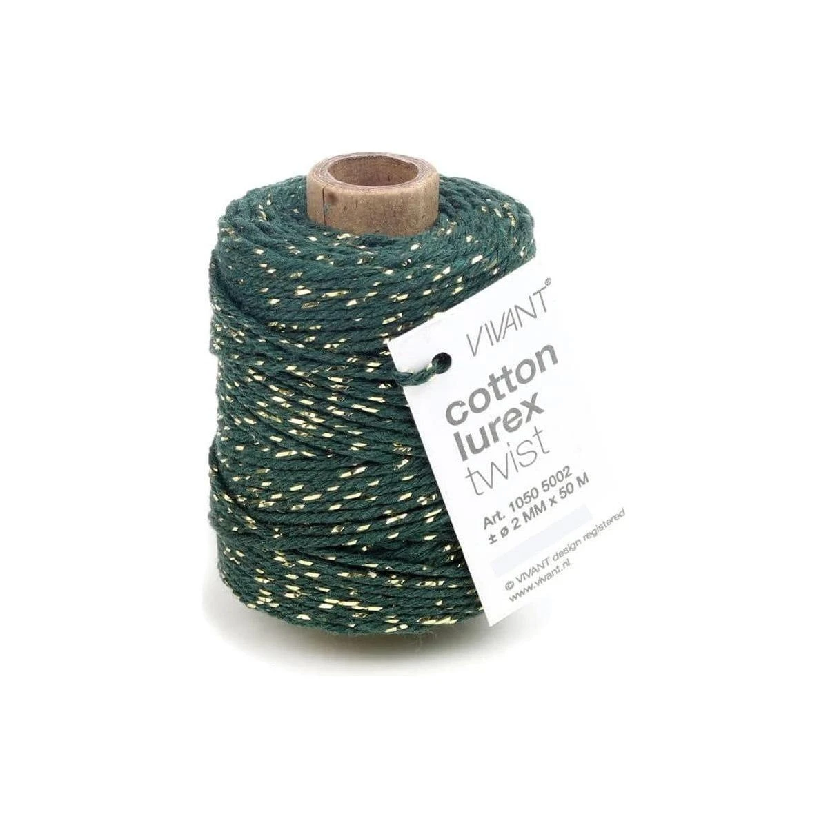 Lurex Bordeaux Cotton Cord by Vivant is a versatile and stylish crafting material that will add a touch of sophistication to any project. This spool of cord contains 54.68 yards of cotton thread infused with metallic lurex in a chic and modern green color. 98% Cotton, 2% Lurex