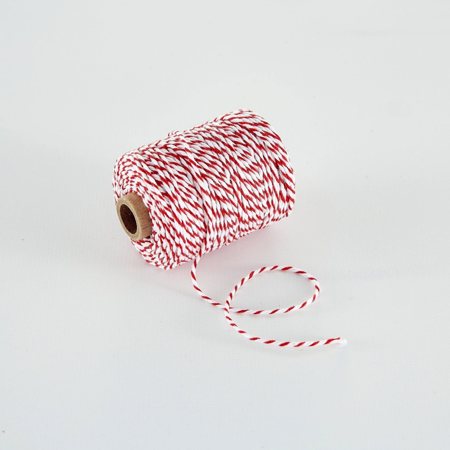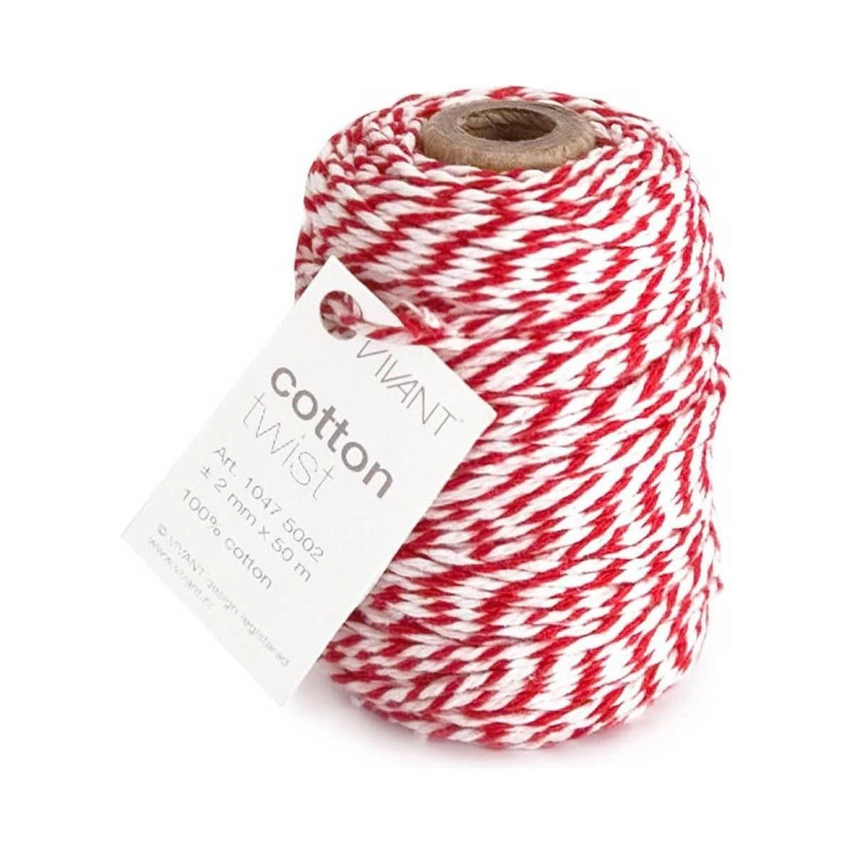Red and White Cotton Twine by Vivant is a versatile and durable crafting material perfect for gift wrapping, scrapbooking, and other DIY projects. This spool of twine contains 54.68 yards of red and white 100% cotton twisted together to create a classic and timeless look..