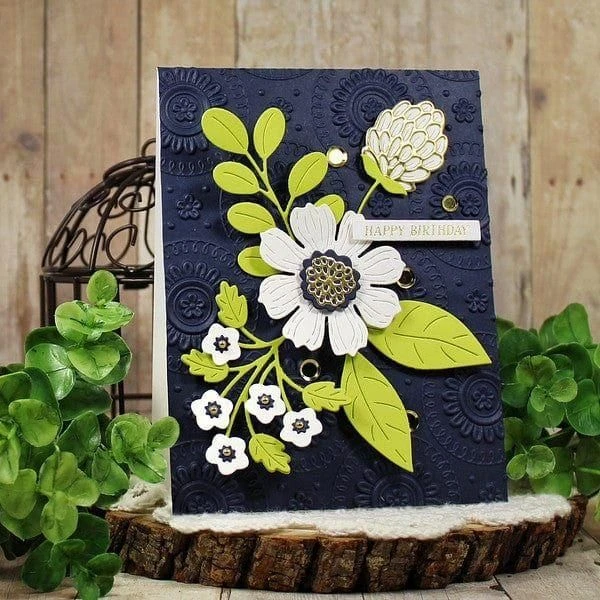Vivid Blooms Etched Dies are from the Vivid Expressions Collection. This set of 17 thin metal cutting dies cuts a wonderful array of beautiful florals. Use them individually to create lovely accents or make an amazing bouquet. The finished Vivid Blooms Bouquet pictured in package measures 4.05 x 5.04 in./10.30 x 12.80 cm.