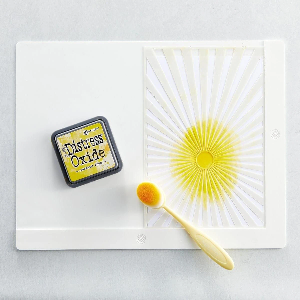 - Two raised edges that form a corner to help hold stencil and paper in place