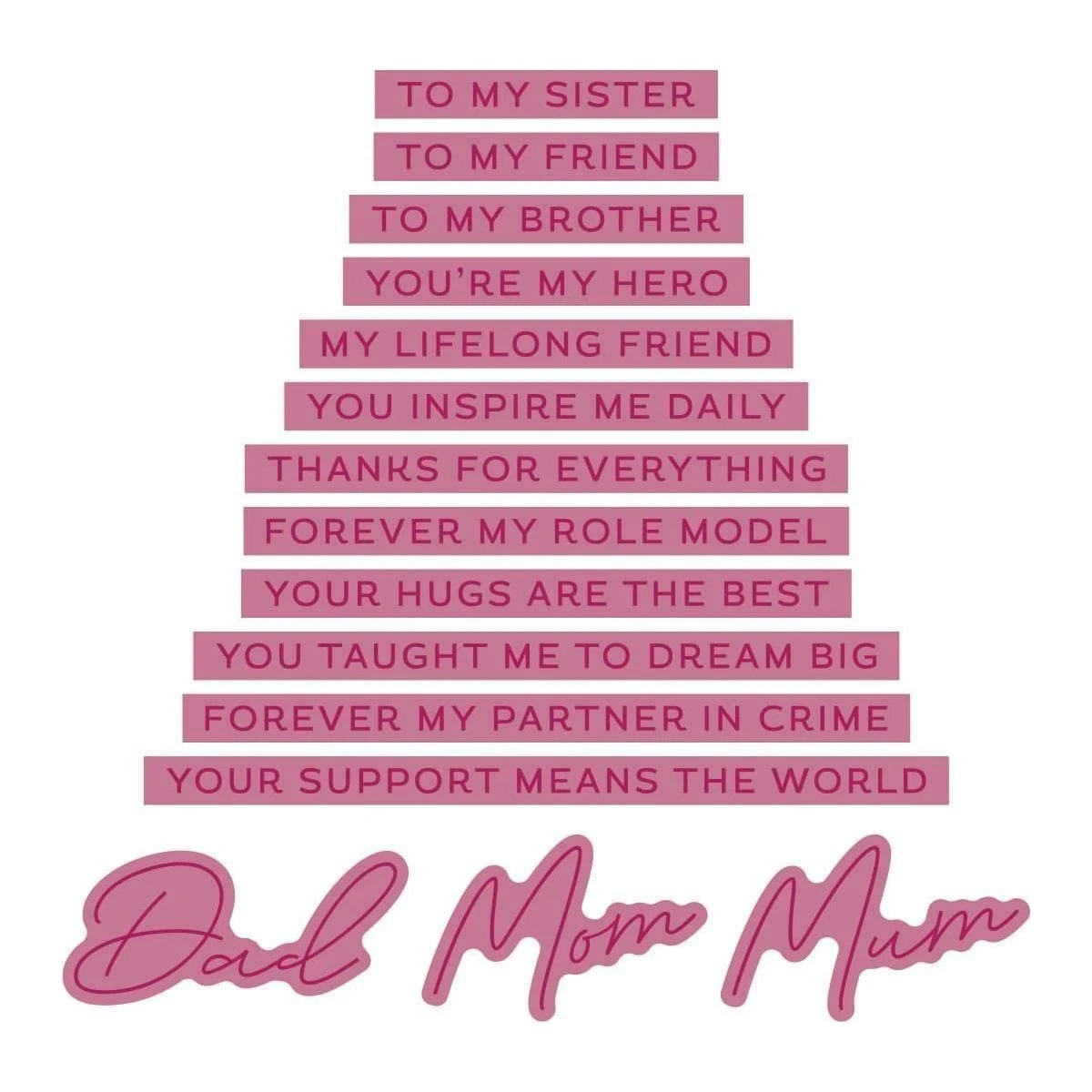 - Mum: 1.30 x 0.65 in | 3.3 x 1.7 cm