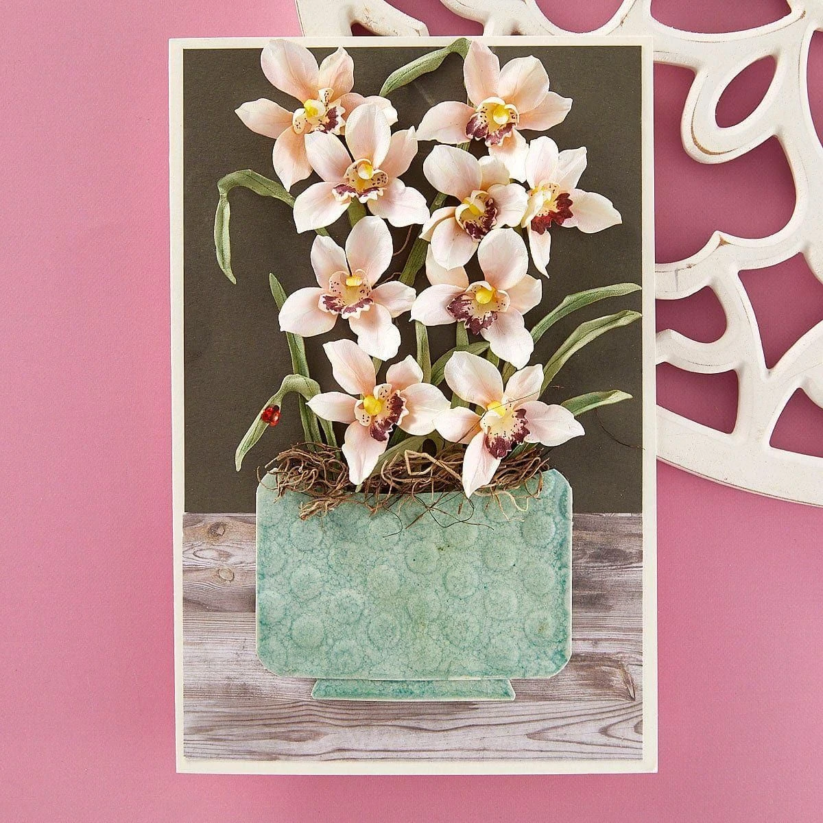 - S4-1363 Cymbidium Orchid and Ladybugs: