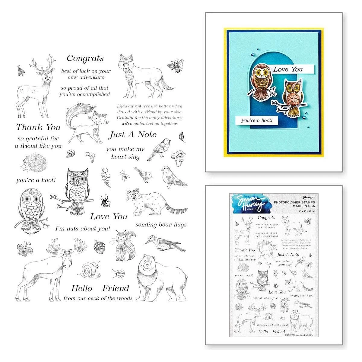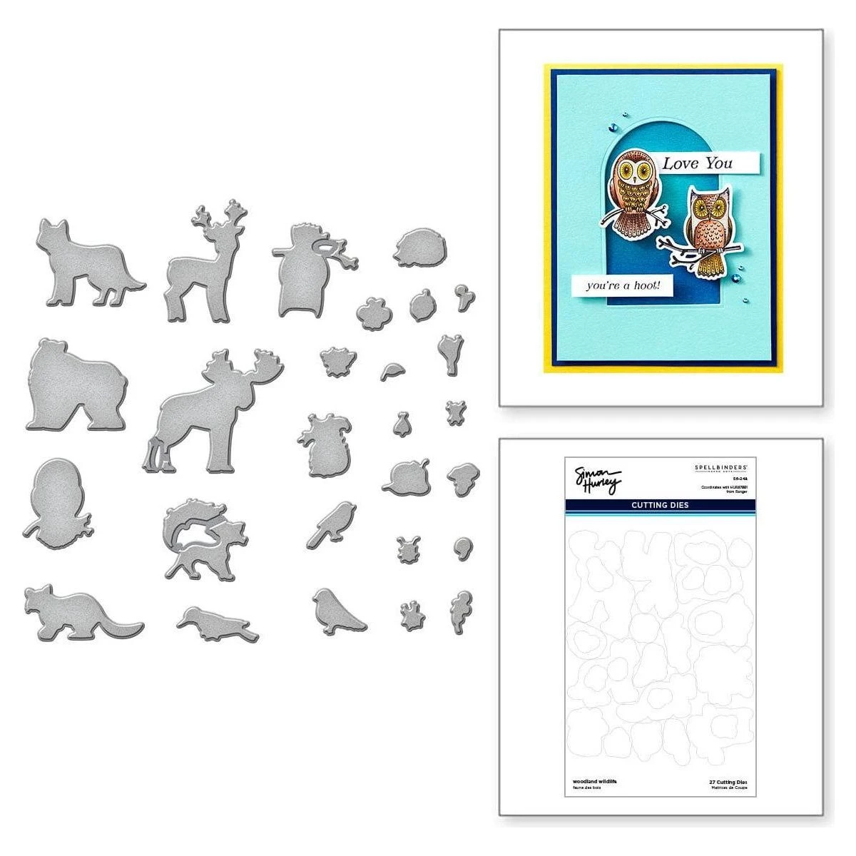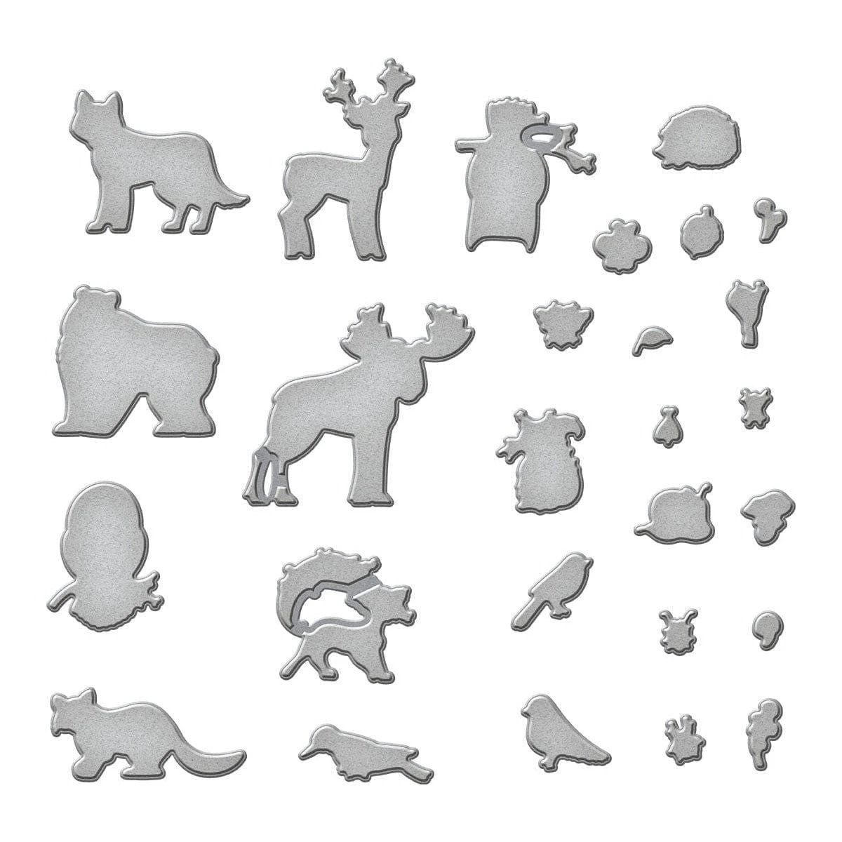 Woodland Wildlife Stamp & Die Bundle by Simon Hurley combines HUR87991 Ranger Woodland Wildlife Clear Stamp Set and S6-248 Woodland Wildlife Etched Dies. Packed full of cute critters, this huge set has enough animals to fill an entire forest! Whatever your favorite animal, this set surely includes some you’ll love! Stamp the elements from the set, then use the outline dies to cut out all 27 of the animals.